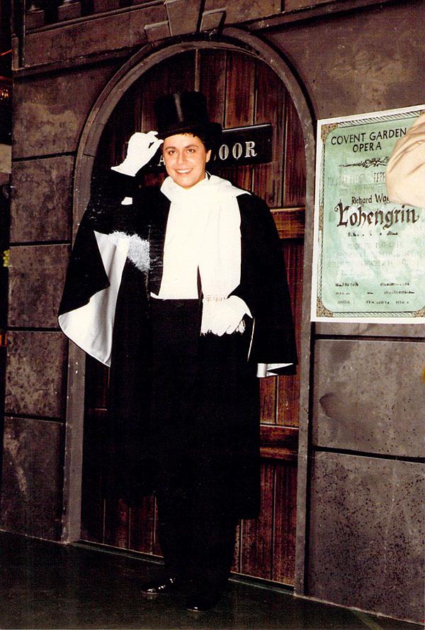 American tenor and voice teacher (b. 1955), signed photo, shown in the musical "My Fair Lady". Signature on verso. Size is 3.5 x 5 inches, in excellent condition.