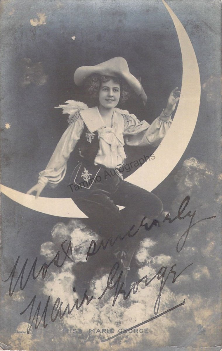 American actress (1877-1975), and singer.  Great black and white photo postcard signed by her with a short sentiment, shown in a play. Size is 3.5 x 5.4 inches, silvering on edges, in very good condition.