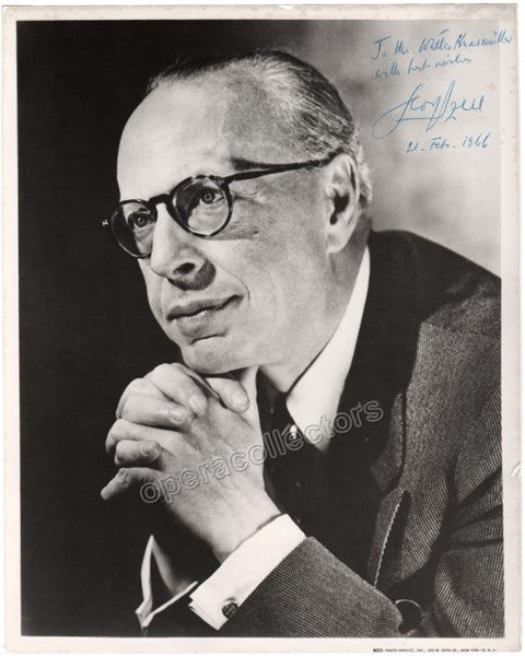 Hungarian-born American conductor (1897-1970), widely remembered for his large number of excellent recordings with the Cleveland Orchestra. Great photo signed by him, inscribed and dated in 1966, 8 x 10 inches, in excellent condition. Clear signature in the only light area of the photo, very nice