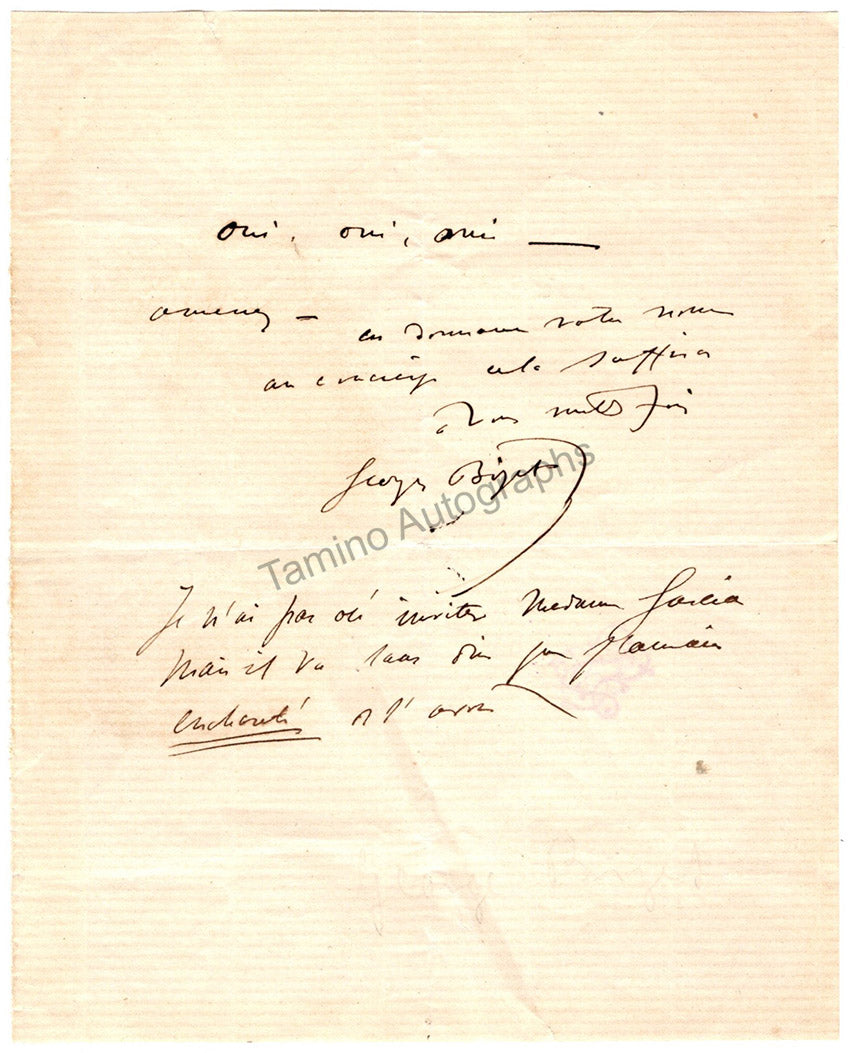Bizet, Georges - Autograph Note Signed Bizet, Georges - Autograph Note Signed