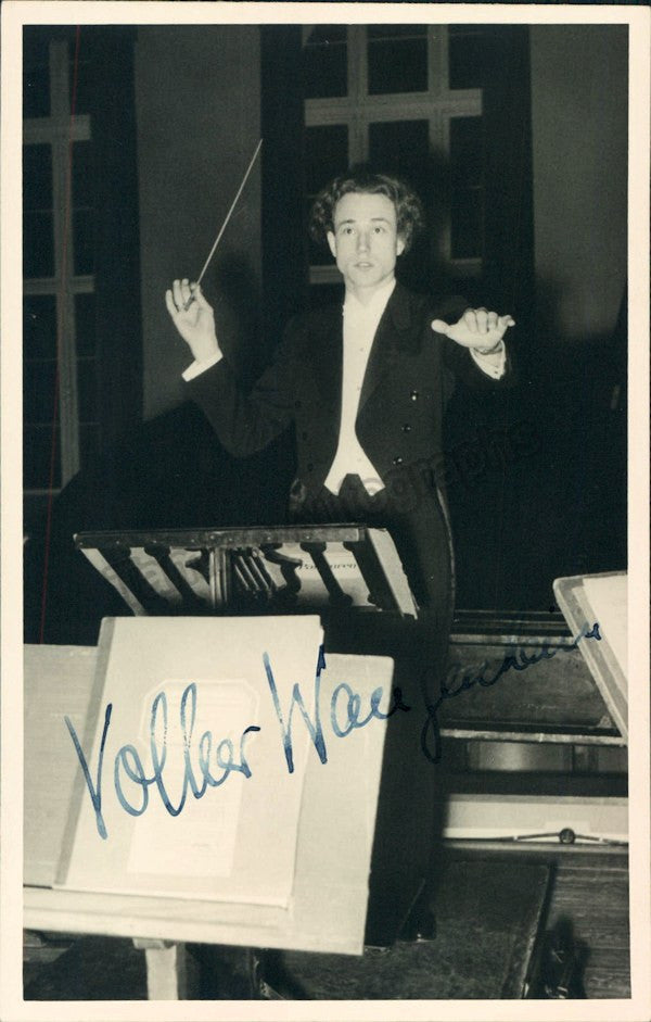 Lot of 5 autograph photos from German conductors, including: Heinrich Bender (b.1925), photo postcard, 3.5 x 5.25 inches, stamped on verso by photographer Sabine Toepffer, Munich - Otto Gerdes (1920-1989), promo photo, 4 x 5.75 inches - Enochan Guttenberg (b.1946), 4 x 5.75 inches - Volker Wangenheim (1928-2014), photo postcard, 3.5 x 5.25 inches, stamped on verso by photographer studio Fraustadter, Berlin - Christoph Prick (b.1946), 4 x 5.75 inches. All in excellent condition.