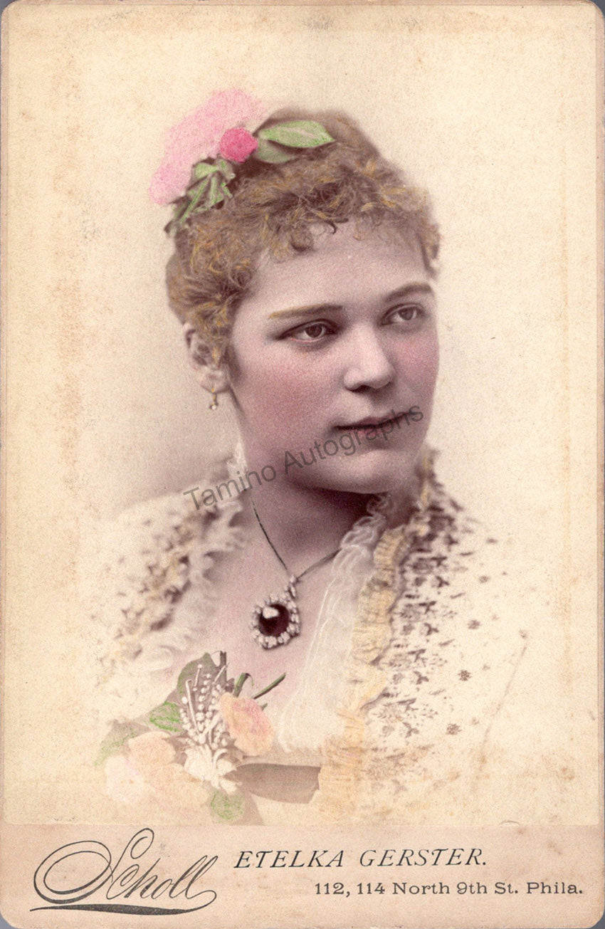 Hungarian soprano (1855-1920). Beautiful cabinet-style colorized photograph by Scholl, Philadelphia.  Size is 4.2 x 6.5 inches, minor stains, in very good condition.