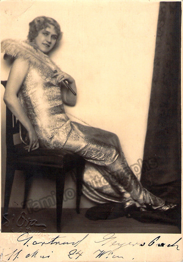 German soprano (1884-?),signed photo postcard, shown ah herself. Size is 3.25 x 4.75 inchestrimmed at the bottom.