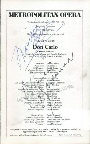 Don Carlo at Met Opera, 1979, cast page only, signed by both