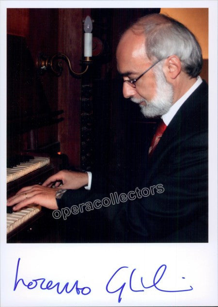 Italian organist and harpsichordist (b.1959), signed photo in performance, size is 5 x 7 inches, in excellent condition.