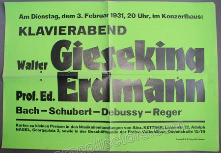 Gieseking, Walter - Concert Poster 1931 | Authentic Item