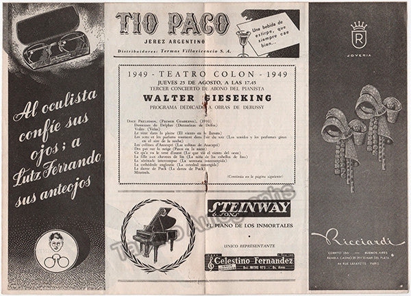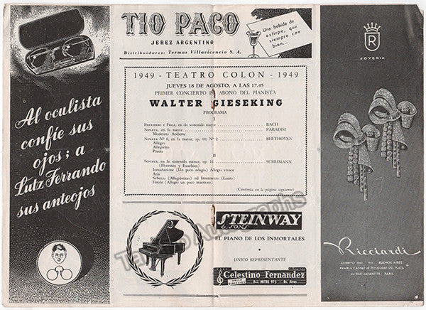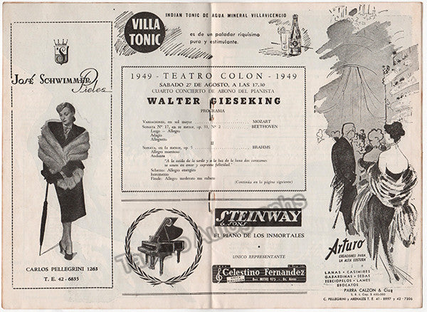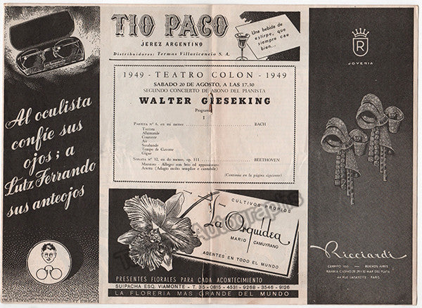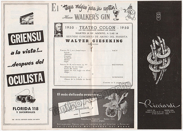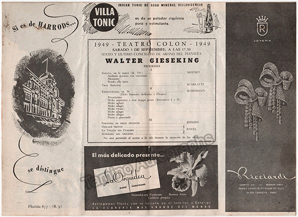 Gieseking, Walter - 6 Concert Programs - Teatro Colon, Buenos Aires, 1