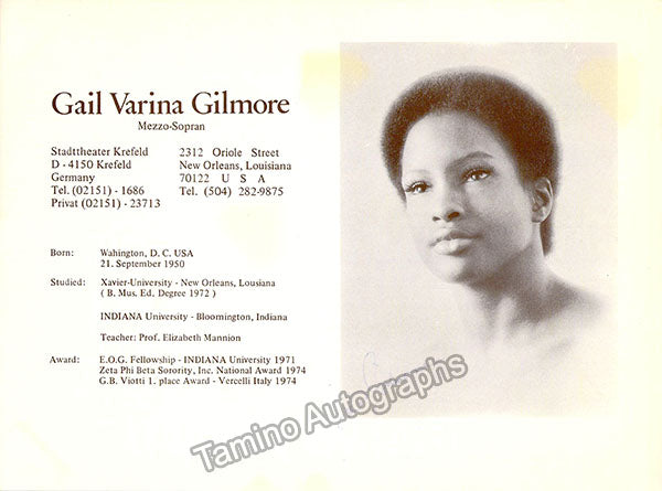 American mezzo-soprano (b. 1950), signed publicity photograph, shown as herself. Size is 5.75 x 7.75 inches, in excellent condition.