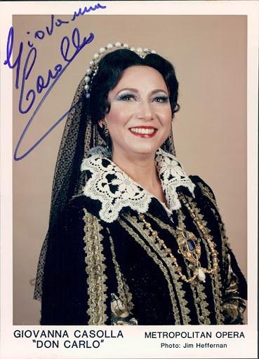Beautiful color promo photograph signed by her, shown as Elisabetta in Verdi's opera Don Carlo at The Metropolitan Opera. Size is 5 x 7 inches, in excellent condition.