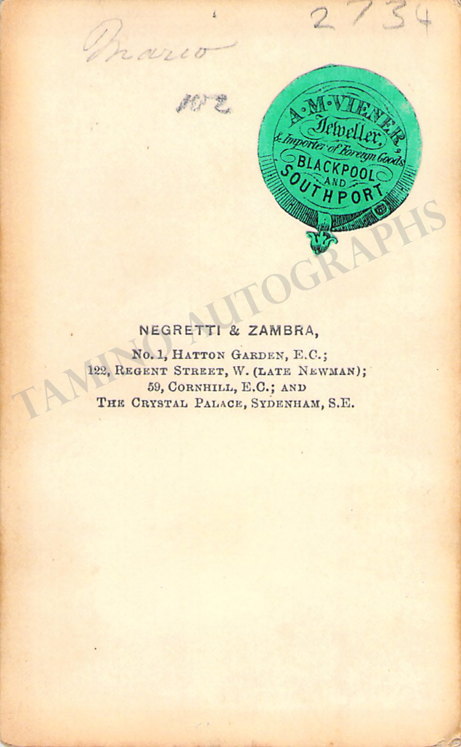 Beautiful vintage CDV (Carte-de-Visite) photo of him by photographer Negretti & Zambra. Size is 2.5 x 4.1 inches, creases on corners, sticker on verso, in overall very good condition.