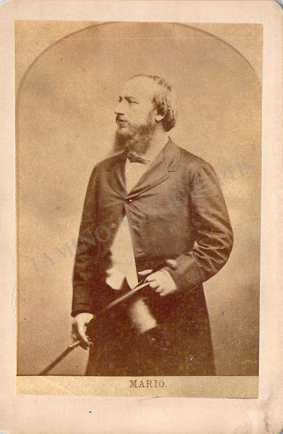 Unsigned Carte-de-Visite (CDV) of the tenor shown as himself. Size is 2.5 x 4 inches, small smudges underneath the photo and on verso, otherwise in very good condition.