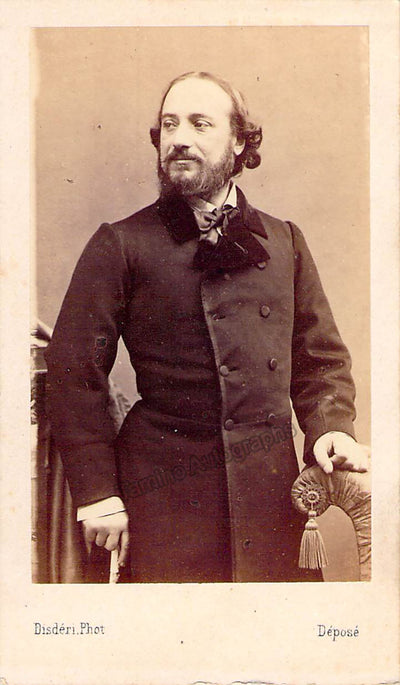 Gorgeous original and unsigned Carte-de-Visite (CDV) of the tenor by photographer Disderi, Paris. Size is 2.4 x 4.1 inches, pencil markings on verso, in excellent condition.
