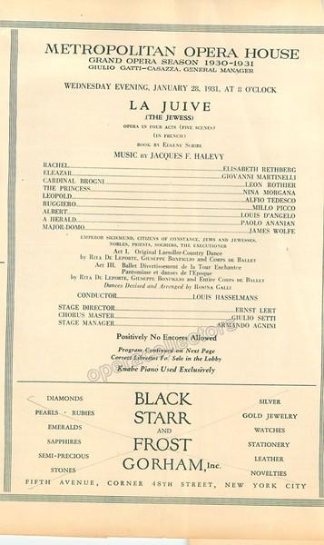 ALSO INCLUDED is a cast page from a Metropolitan Opera program for a performance in 1931 of La Juive, with Martinelli as Eleazar. An excellent extra to frame with the photo if desired