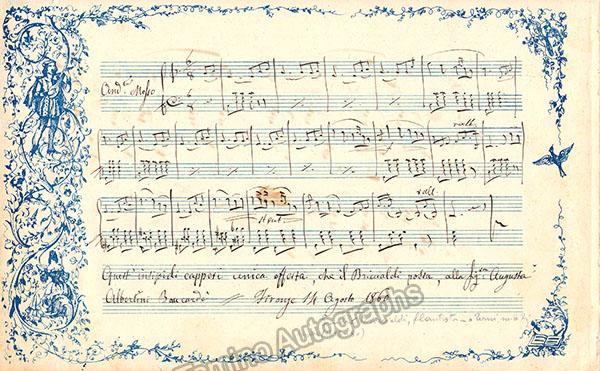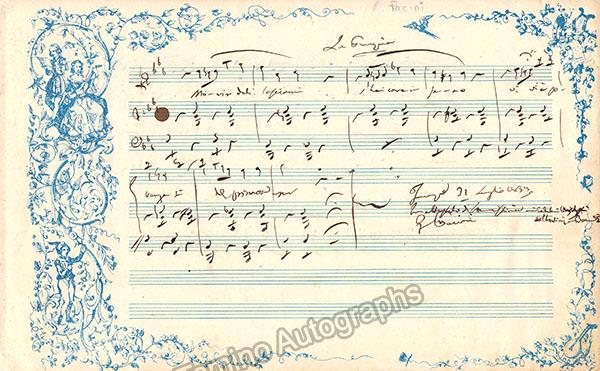 Pacini, Giovanni - Briccialdi, Giulio - Autograph Music Quote Signed 1854/1860.