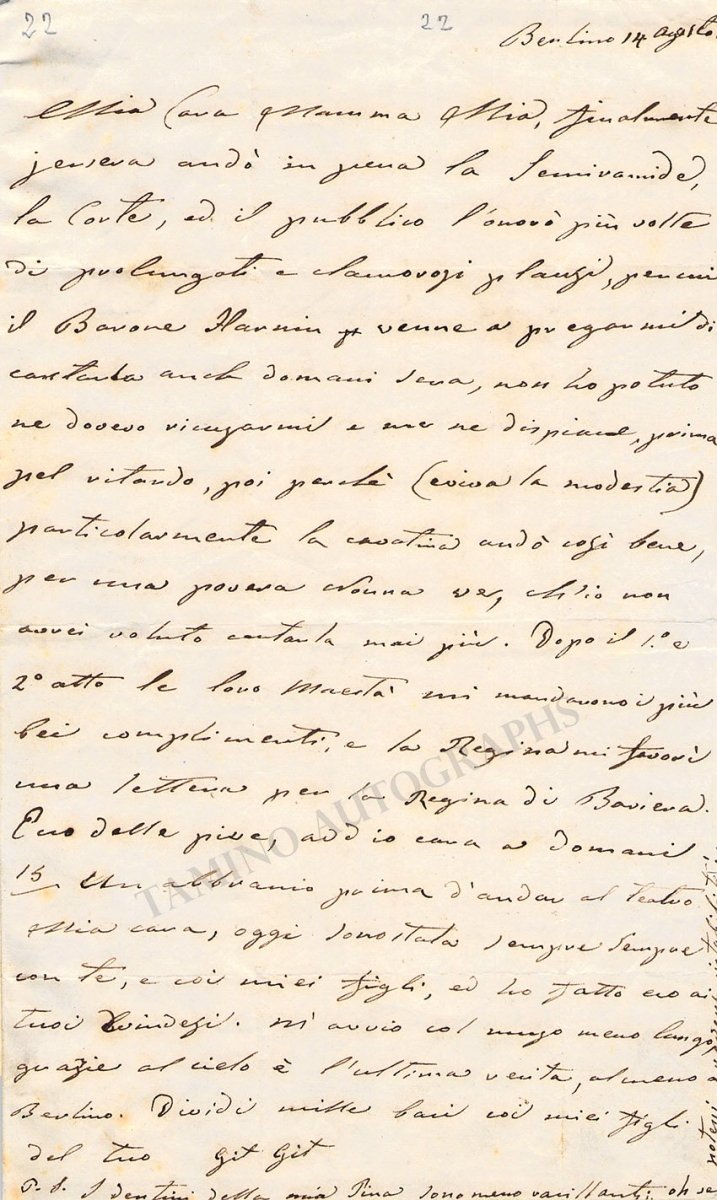Pasta, Giuditta - Autograph Letter Signed - Tamino Pasta, Giuditta - Autograph Letter Signed - Tamino Pasta, Giuditta - Autograph Letter Signed - Tamino