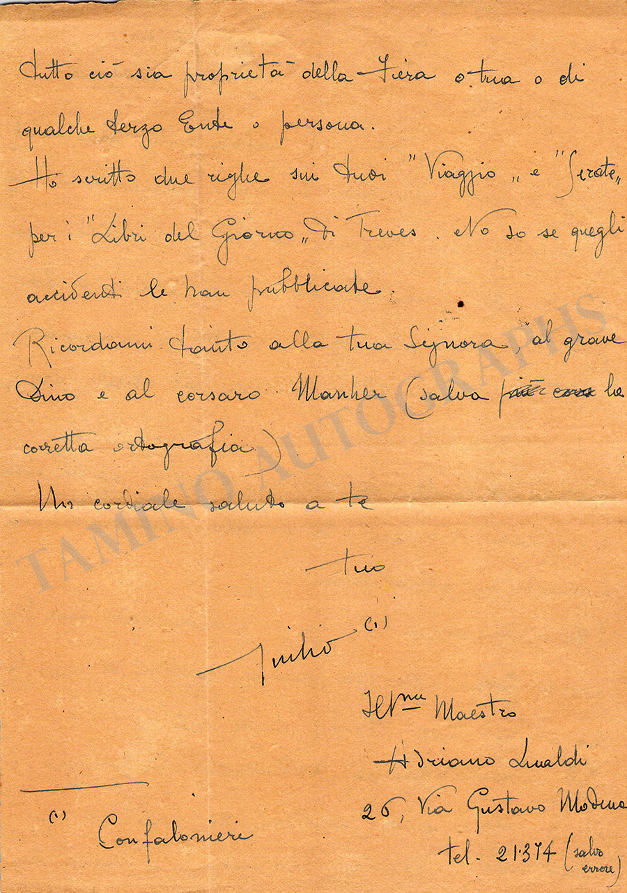 THE "TAMINO AUTOGRAPHS" semi-transparent legend over the pictures shown here does not exist in the actual item.