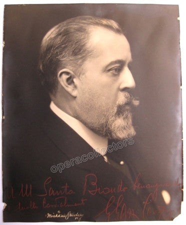 Famous italian opera impresario (1869-1940), he was the manager of La Scala (1898-1908) and the Met Opera for 27 years! (1908-1935). Beautiful signed photo, large size: 10 x 12.25 inches, inscribed. Trimmed at the bottom, some damage on the borders not affecting signature, priced accordingly. Signed photos of Gatti-Casazza are uncommon, especially on this size.