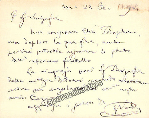 Giuseppe Verdi Autograph Handwritten and Signed Note 1894