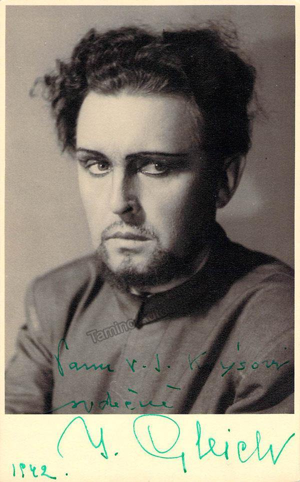 Moravian tenor (1900-?), signed photo postcard, shown in unknown role, dated in 1942. Stamped on verso by photographer Joseph Heinrich, Prague. Size is 3.2 x 5.25 inches, in excellent condition.