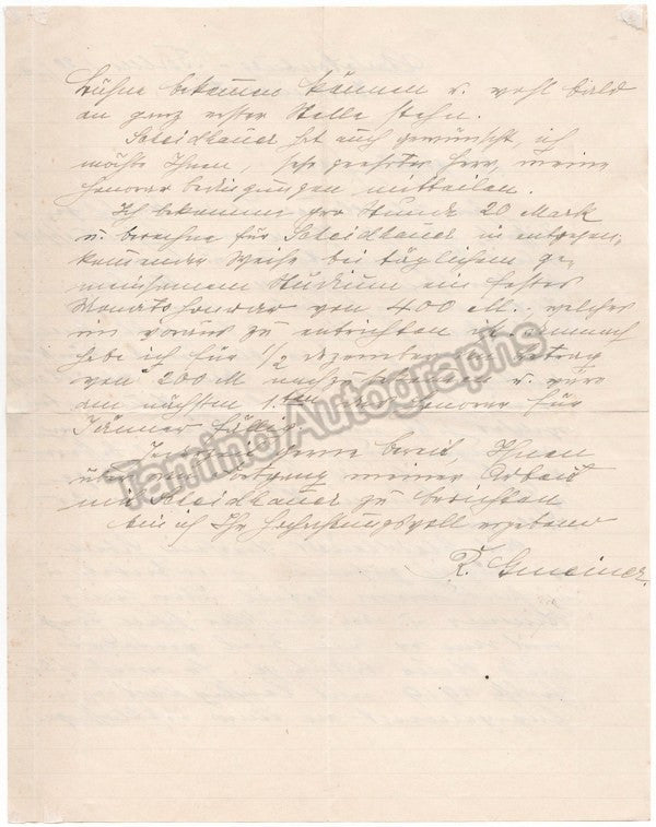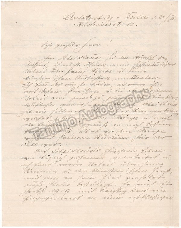 German bass-baritone (1880-1937), autograph letter signed, in German, dated in Berlin in 1918, sold untranslated. Two pages, signature on verso, 8.5 x 11 inches. Letter has folds, otherwise in excellent condition.