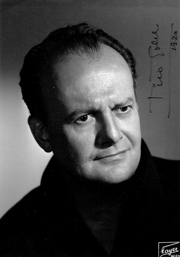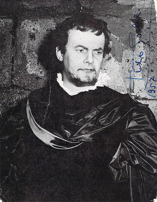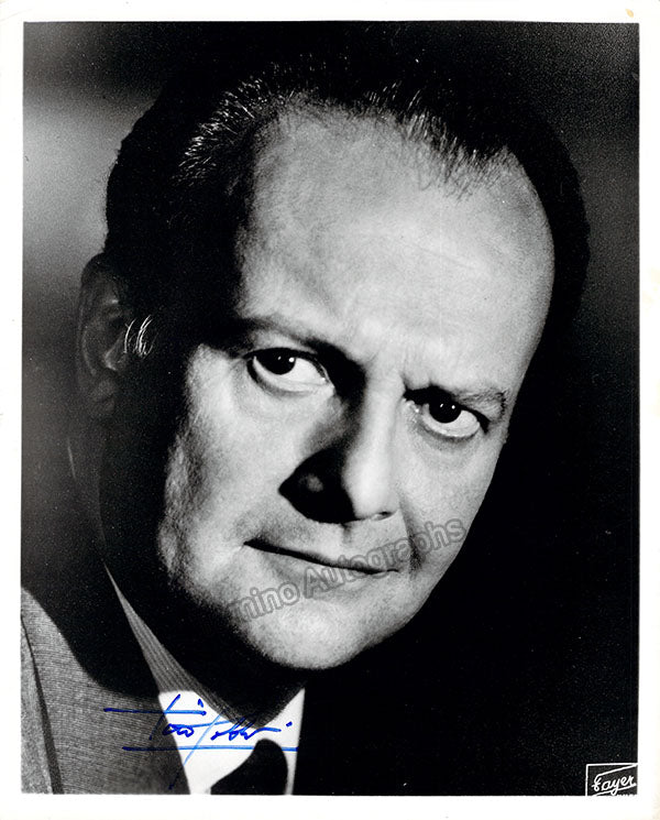 Signed photograph, shown as Scarpia in Puccini's Tosca, his most celebrated role. Dated in Chicago in 1964. Size is 5 x 7 inches, several small creases, otherwise in very good condition.