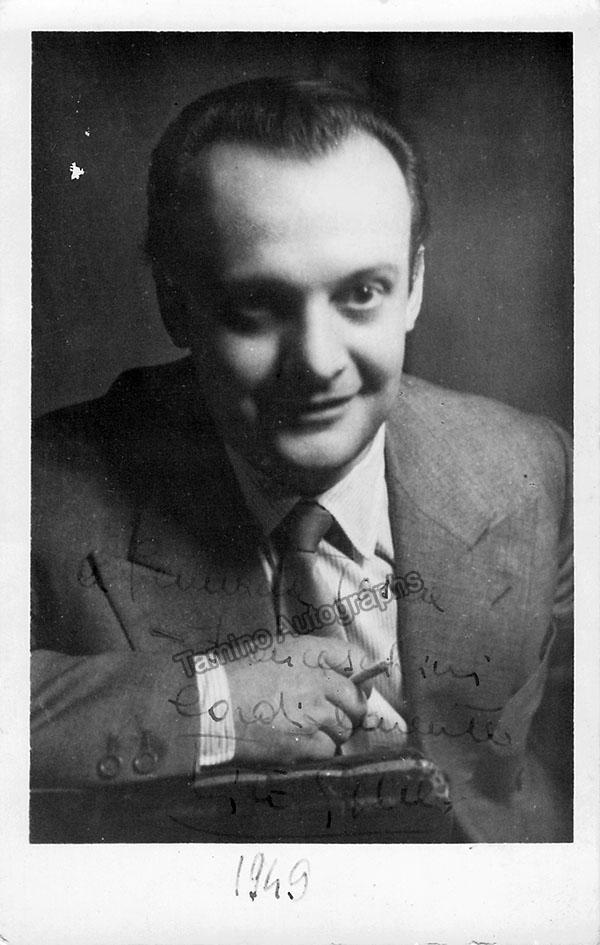 Signed half-tone photograph, shown as himself, young, inscribed, dated in Genoa in 1950. Size is 6 x 8 inches, in very good condition.