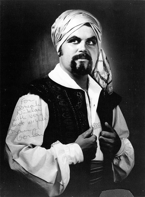 American concert and operatic tenor (b. 1947), signed photograph, shown as Nadir in Bizet's Les Pecheurs de Perles, inscribed. Size is 7 x 9.25 inches, in excellent condition.