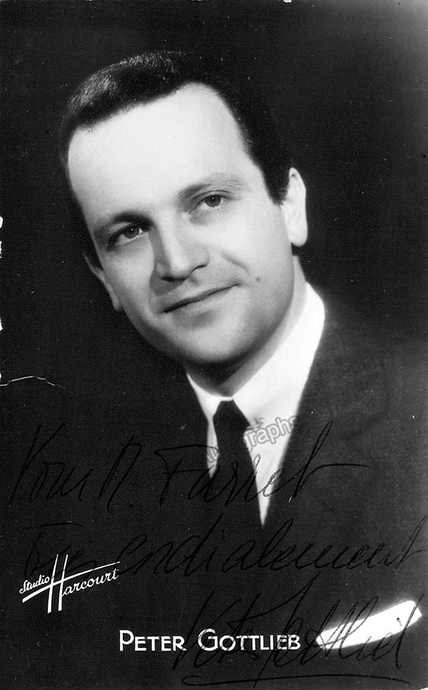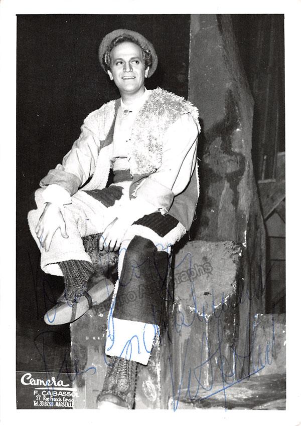 Signed photograph, shown as himself, inscribed. Photo by Harcourt photo studio, Paris. Size is 3.5 x 5.5 inches, in very good condition.