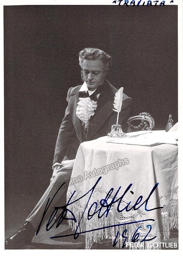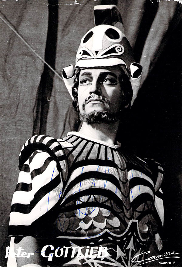 Signed photograph, shown in role in Gluck's Iphigenie en Aulide. Stamped on verso by photographer J. Lapierre, Marseilles. Size is 4.25 x 6 inches, slight paper loss on edges, otherwise in very good condition.