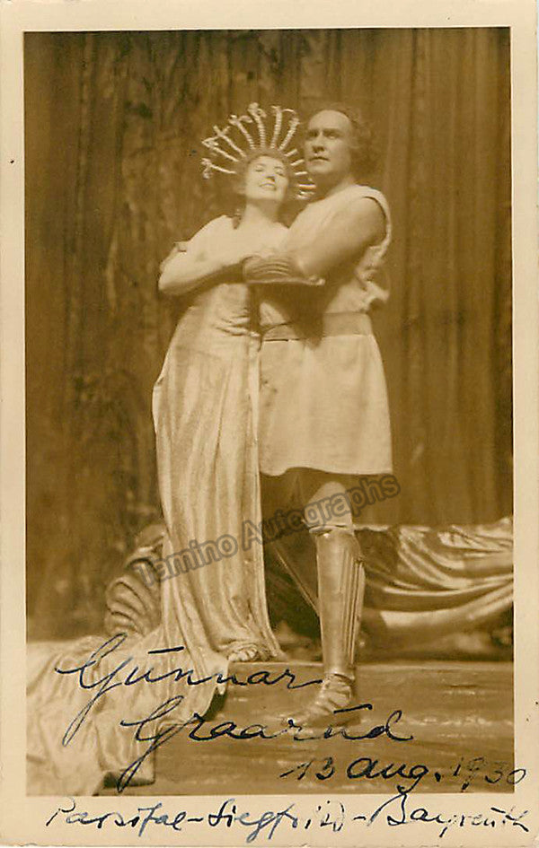 Norwegian operatic tenor (1886-1960), signed photo postcard, shown in role in Bayreuth Festival, dated in 1930. Size is 3.5 x 5.5 inches.