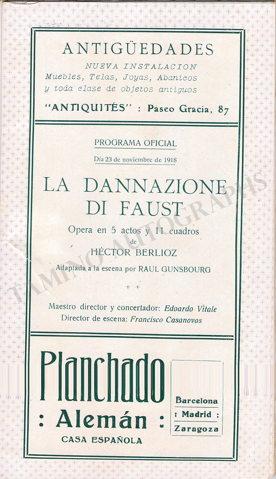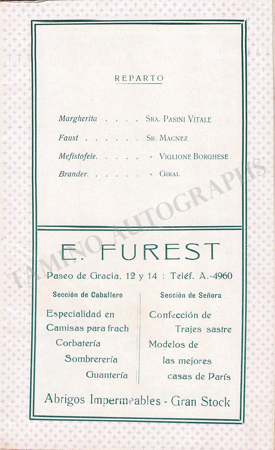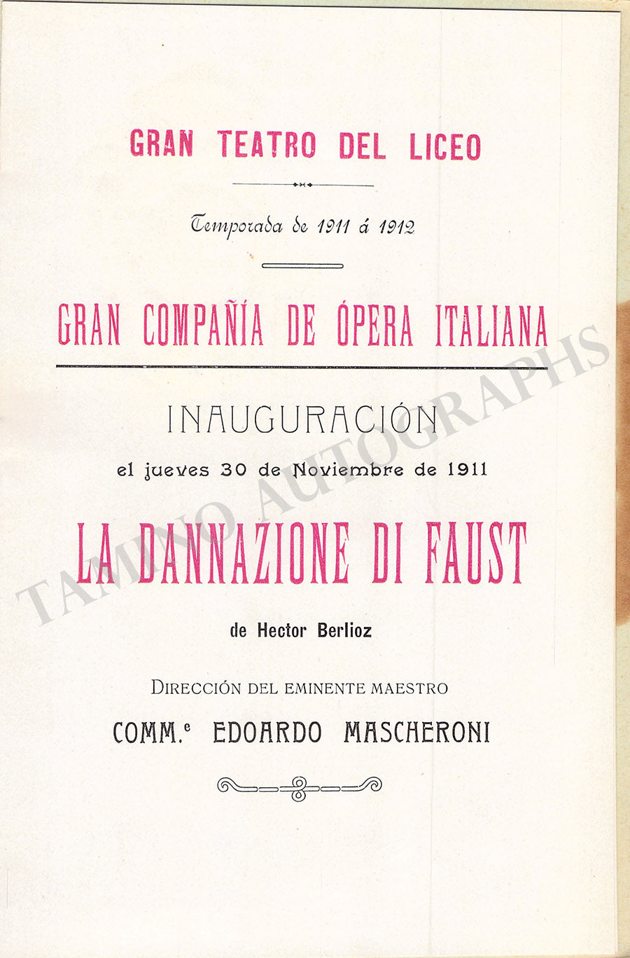 THE "TAMINO AUTOGRAPHS" semi-transparent legend over the pictures shown here does not exist in the actual item.