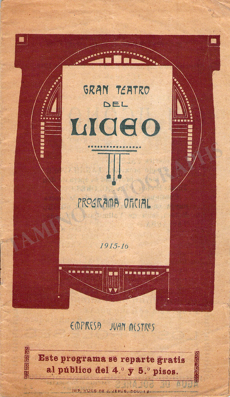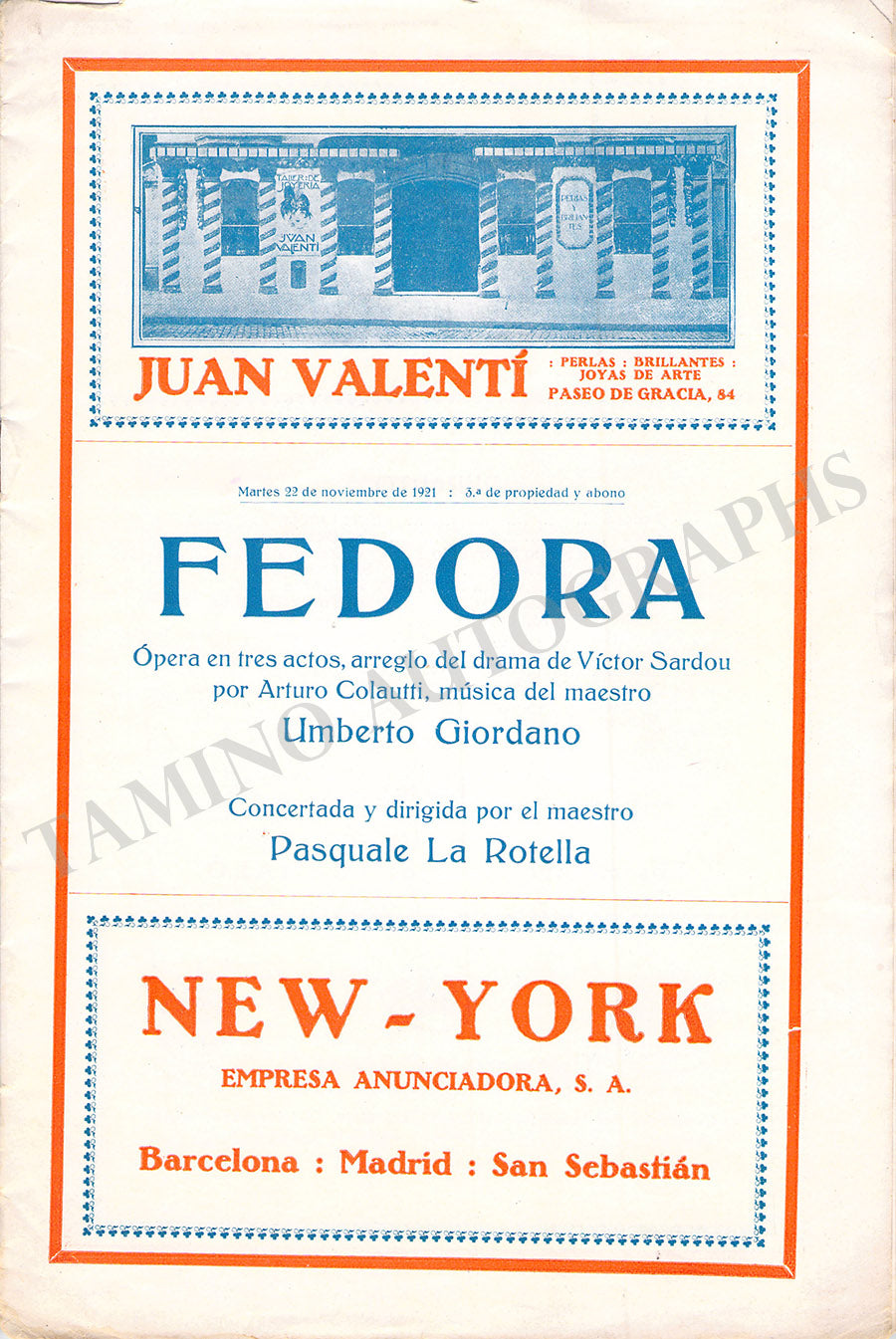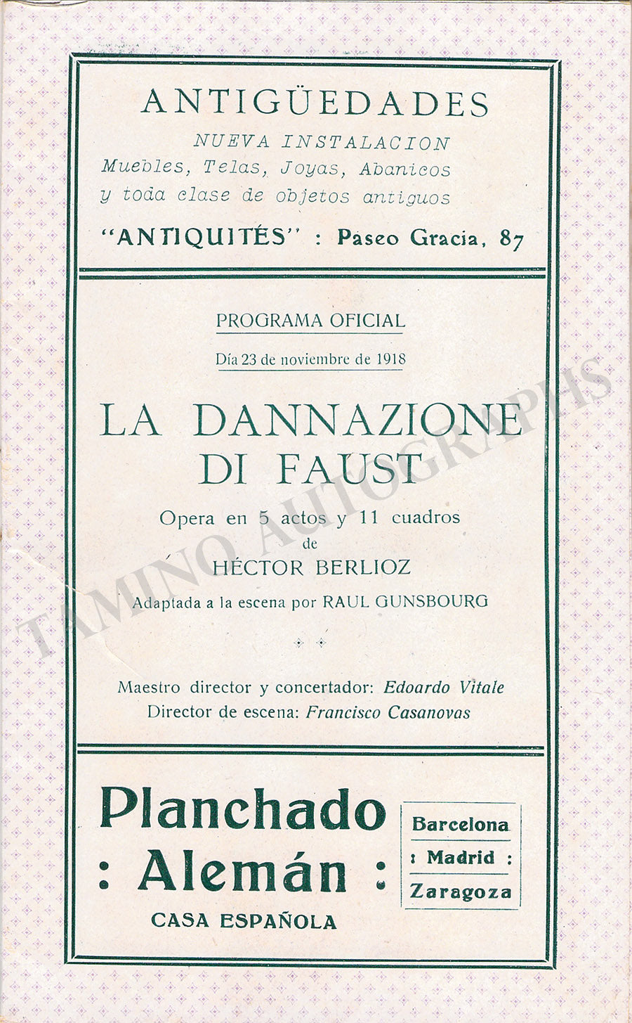 THE "TAMINO AUTOGRAPHS" semi-transparent legend over the pictures shown here does not exist in the actual item.