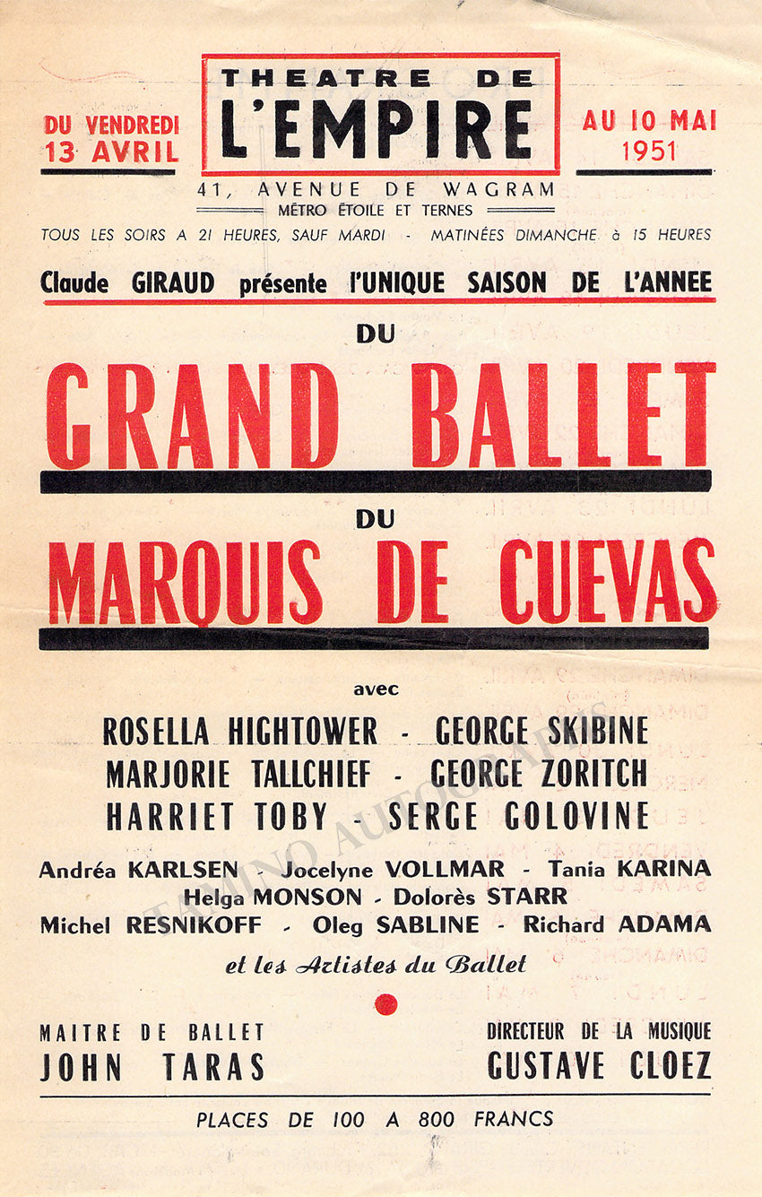 Grand Ballet du Marquis de Cuevas Season Program 1951