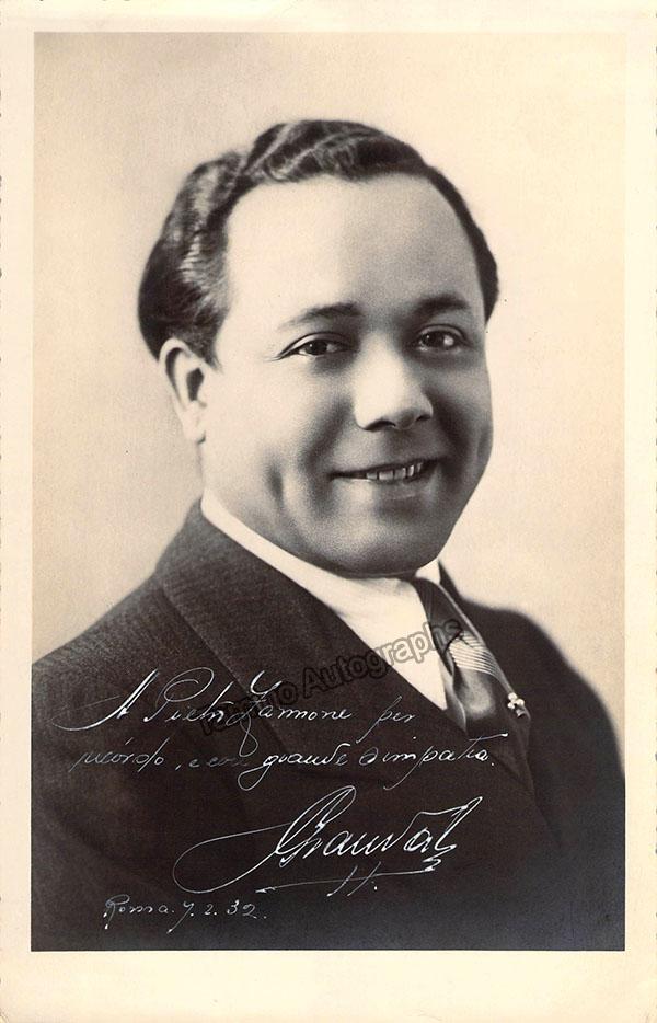 Peruvian tenor (1898-1962), signed inscribed large photo, shown as himself, dated in 1932, Rome. Rare item, sized 6 x 9.75 inches, in excellent condition.