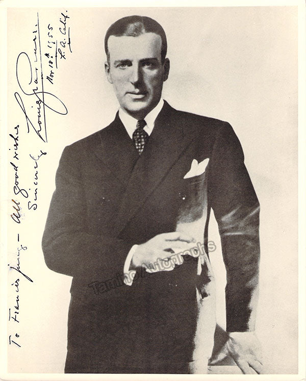 Signed photograph, shown as himself, inscribed with sentiment and dated in Los Angeles in 1953. Size is 8 x 10 inches, small creases on bottom right and slight paper loss above the image, otherwise in excellent condition.