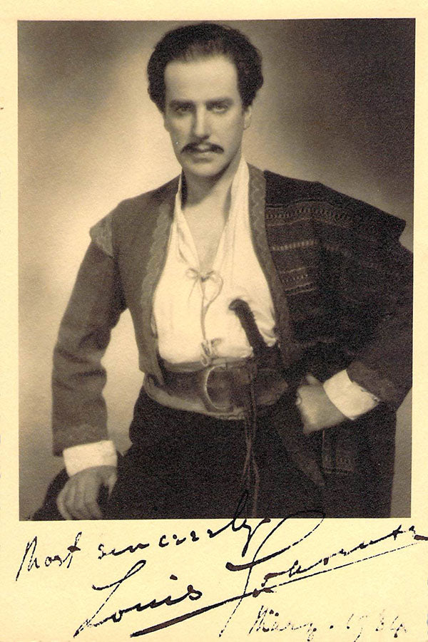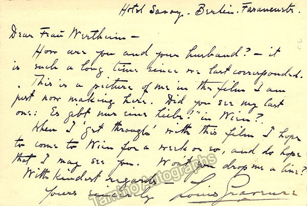 Signed photo postcard, shown in role. Signed on front with additional signed and inscribed note on verso with very clear signature. Size is 3.5 x 5.25 inches, in excellent condition.