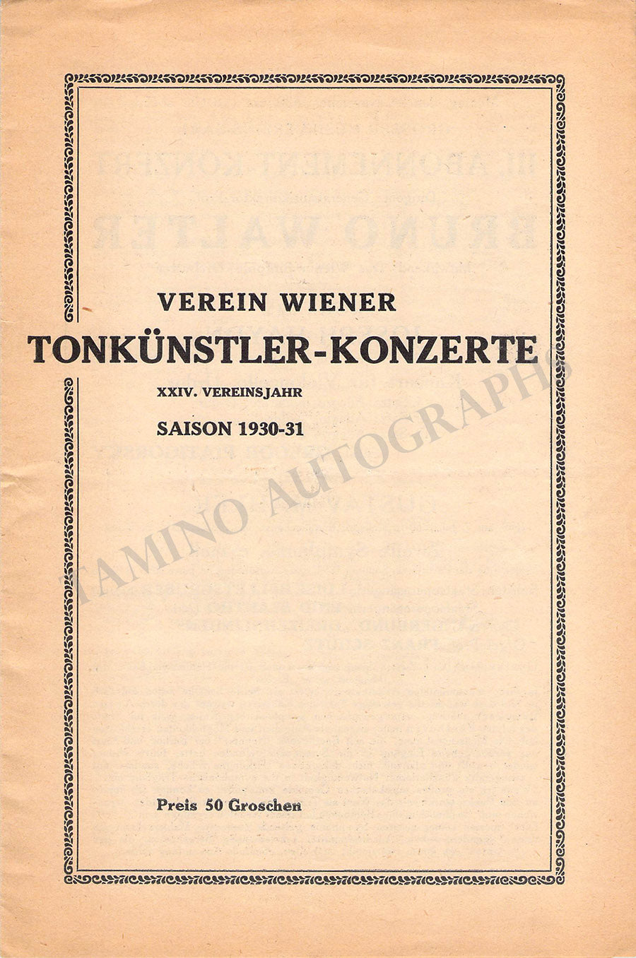 Piatigorsky, Gregor - Walter, Bruno - Concert Program Vienna 1930 Piatigorsky, Gregor - Walter, Bruno - Concert Program Vienna 1930 Piatigorsky, Gregor - Walter, Bruno - Concert Program Vienna 1930