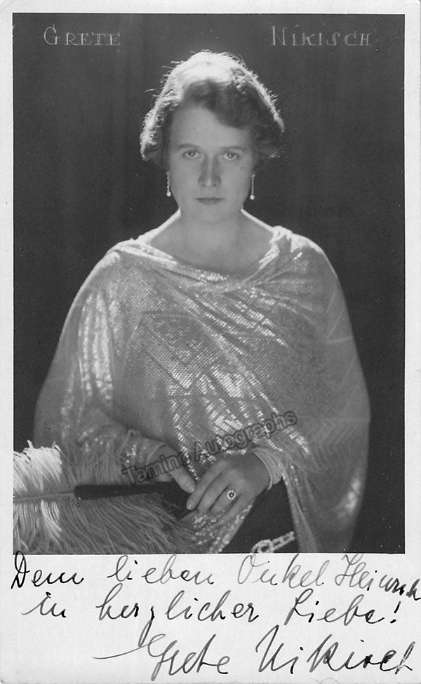 Collectors of soprano autographs, vintage opera photography, and classical music memorabilia will recognize the value of a well-preserved Grete Merrem-Nikisch autograph such as this. Ideal for framing or archival storage, this signed postcard makes a refined and historically meaningful addition to any serious collection.