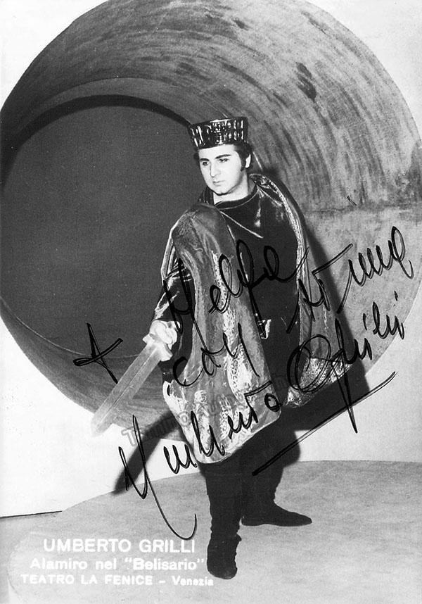 Signed photograph, shown as Alamiro in Donizetti's Belisario, inscribed. Size is 4 x 5.75 inches, in excellent condition.