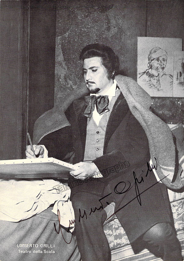 Signed photograph, shown as Rodolfo in Puccini's La Boheme. Stamped on verso by photographer A. Negro. Size is 4 x 5.75 inches, slight crease on bottom left corner, otherwise in excellent condition.