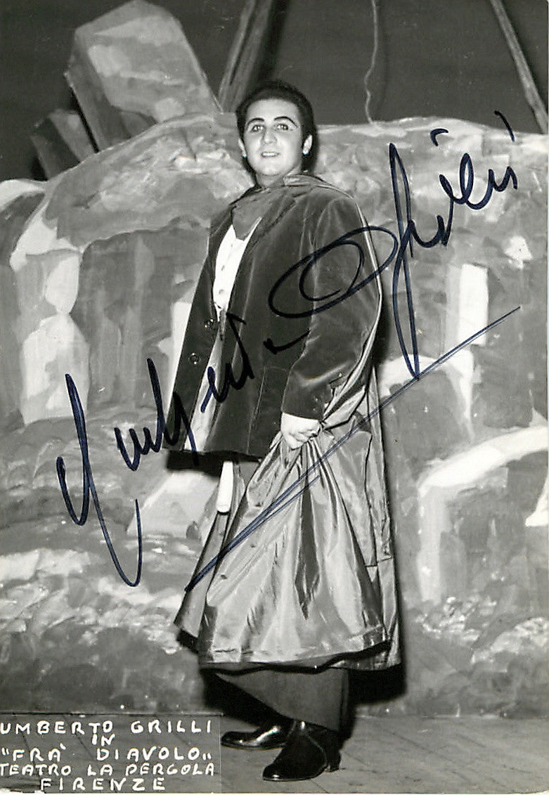 Signed photograph, shown in role in Auber's Fra Diavolo. Size is 4 x 5.75 inches.