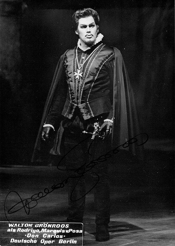 Finnish baritone (1939-1999), signed photograph, shown as Rodrigo in Verdi's Don Carlo. Stamped on verso by Harri Irmler photographers, Berlin. Size is 4 x 5.75 inches, slight paper loss on bottom left, otherwise in excellent condition.