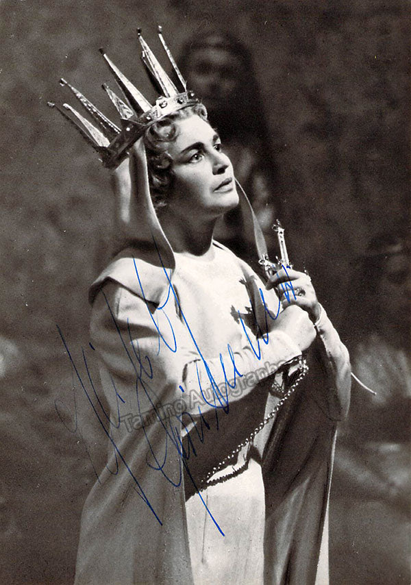 German soprano (1911-1986), signed postcard photograph, shown as Elsa in Wagner's Lohengrin at the 1960 Bayreuth Festival. Photo by Ilse Buhs, Bayreuth. Size is 4 x 5.75 inches, in excellent condition.