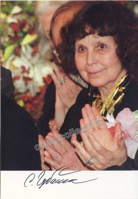 Russian-tartar composer (b.1931), well known for her music which combines many different instruments. Signed photo, 5 x 7 inches