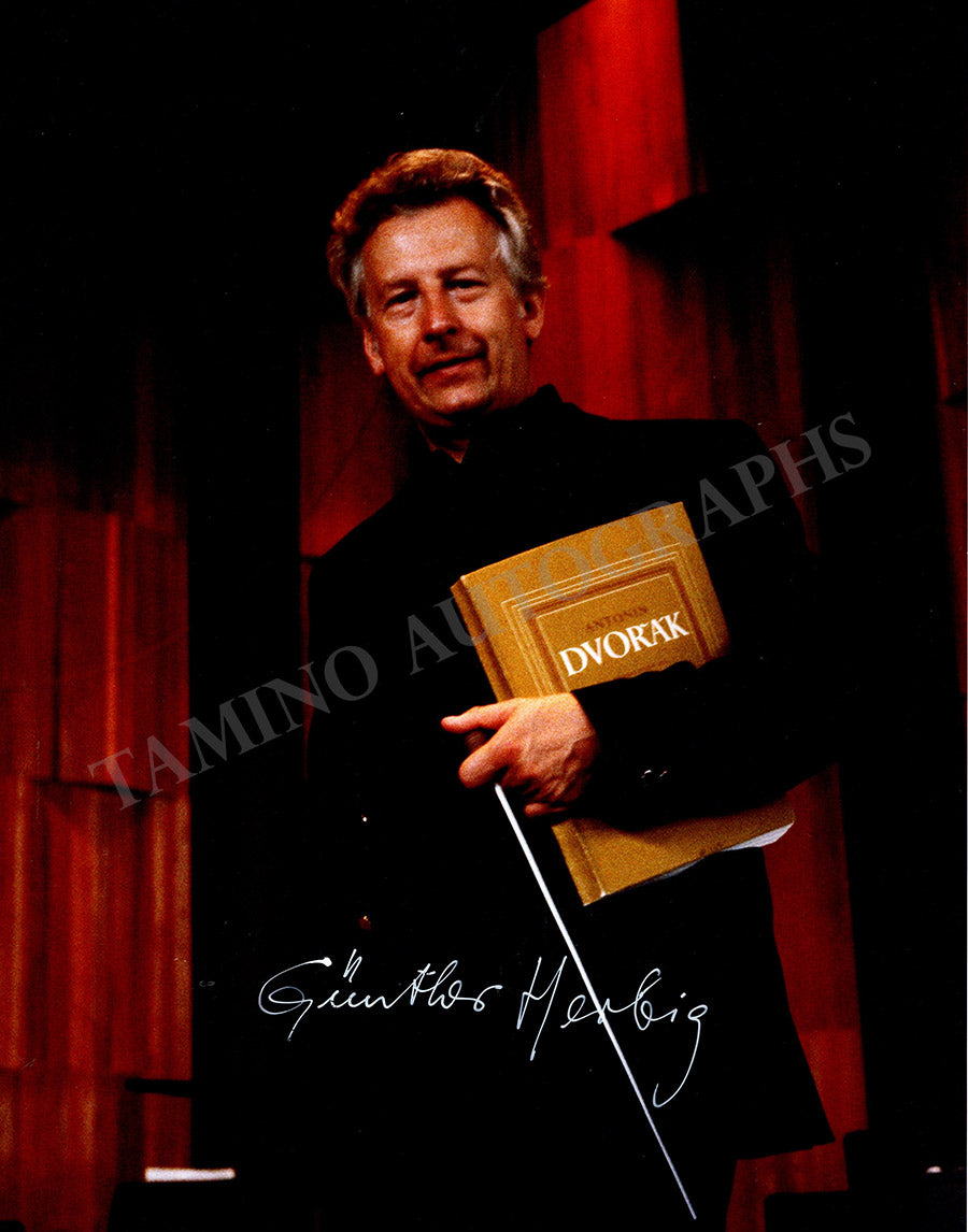 Larger size color Cibachrome* print signed by the conductor, shown in rehearsal in Philadelphia, 1986; also signed on verso by photographer Allen Winigrad.  Size is 10.9 x 13.9 inches, mounting traces on verso, otherwise in excellent condition.