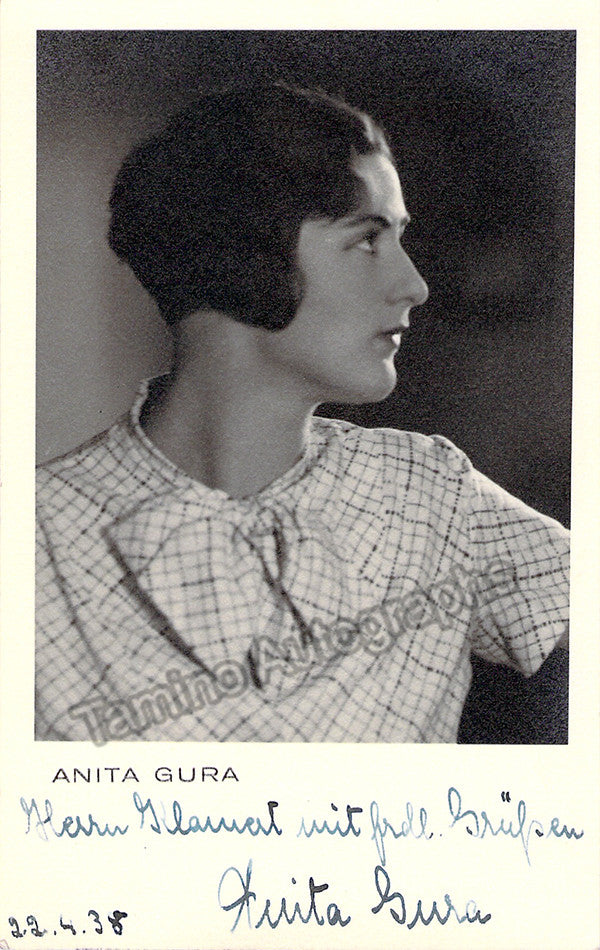 German soprano (1911-1978), signed photo postcard, shown as herself, inscribed and dated in 1938. Stamped on verso by photographer Otto Vogelsang, Berlin. Size is 3.5 x 5.5 inches.