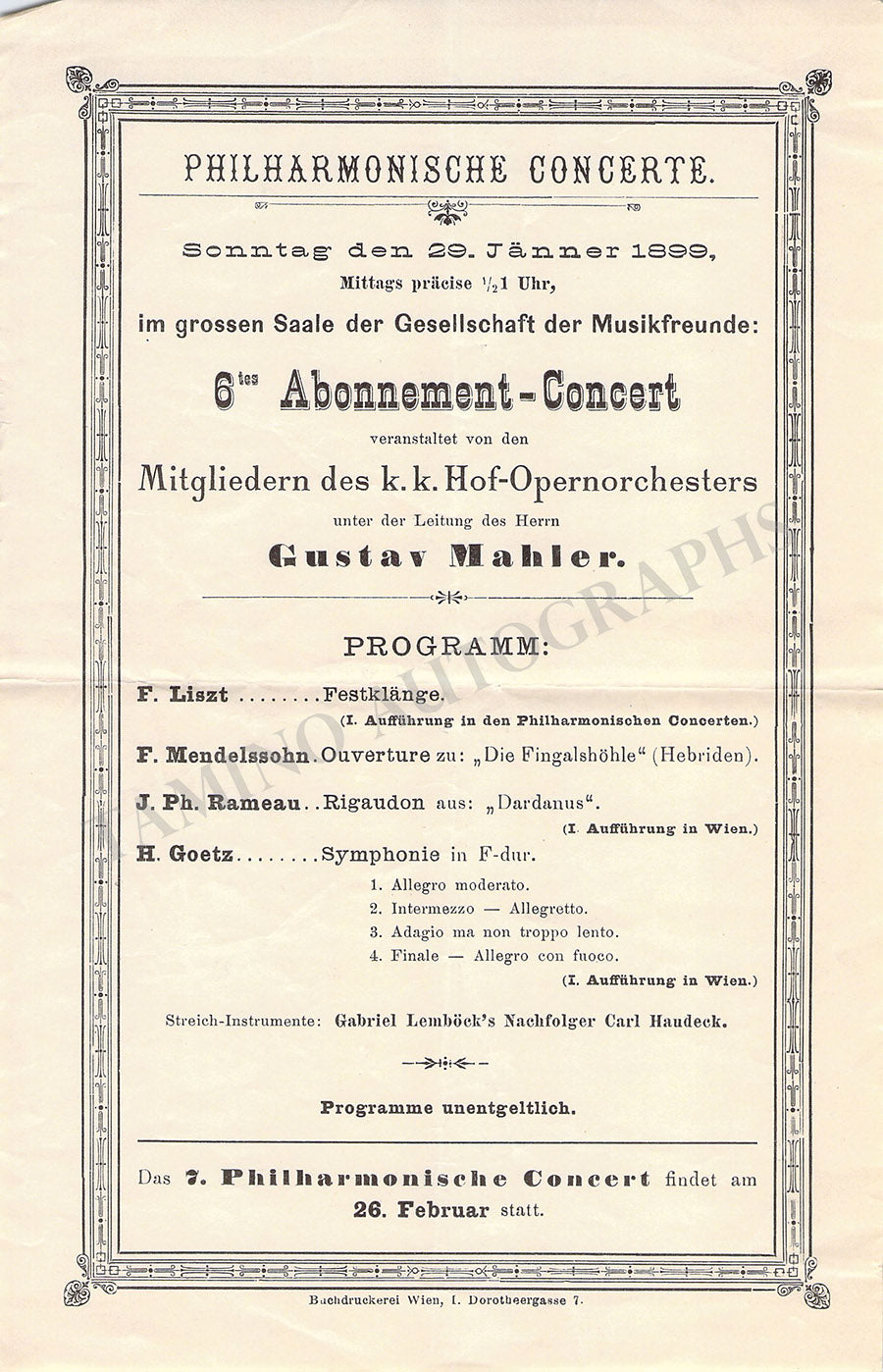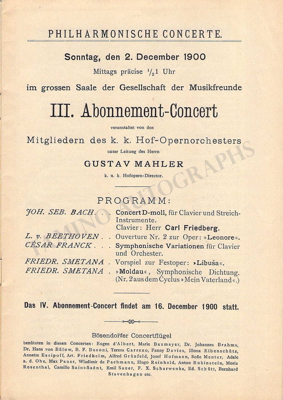 Mahler, Gustav - Unsigned Concert Programs 1899-1910 (Various Options)