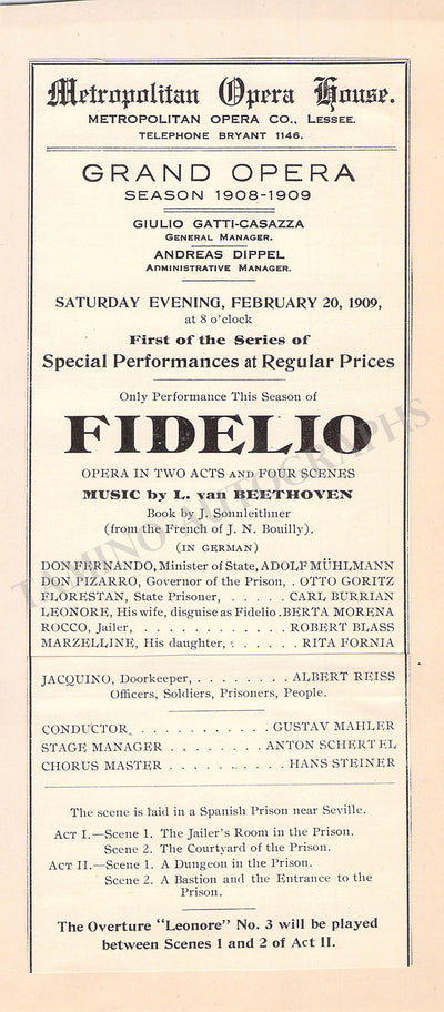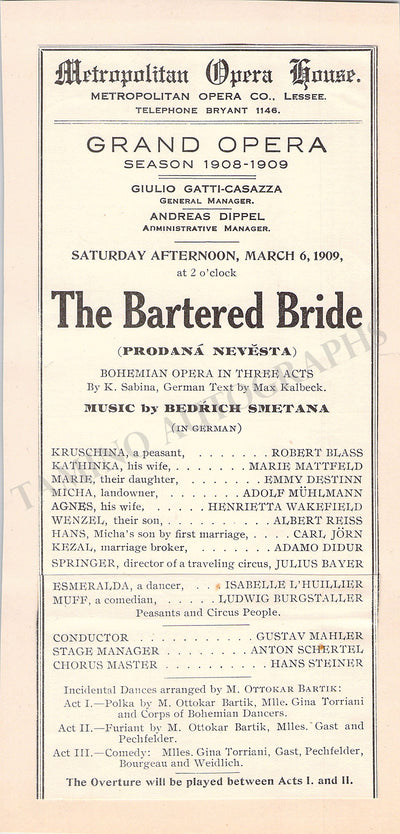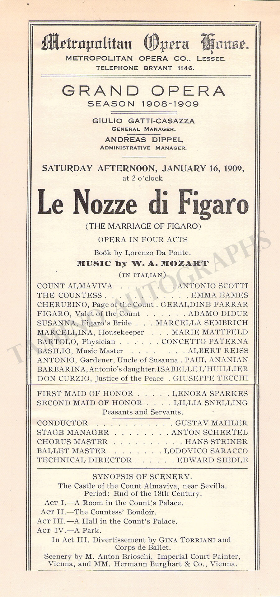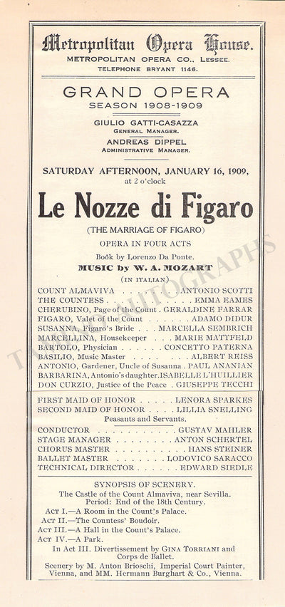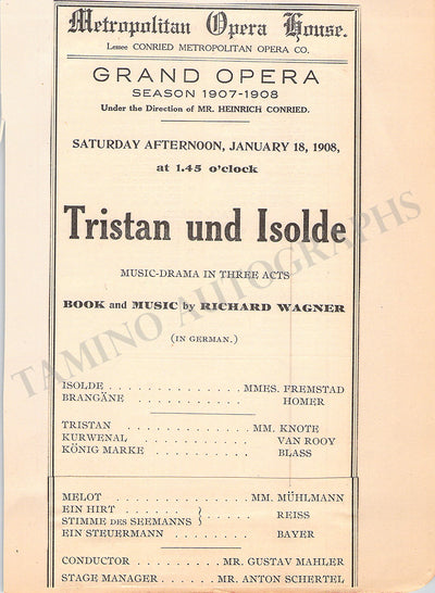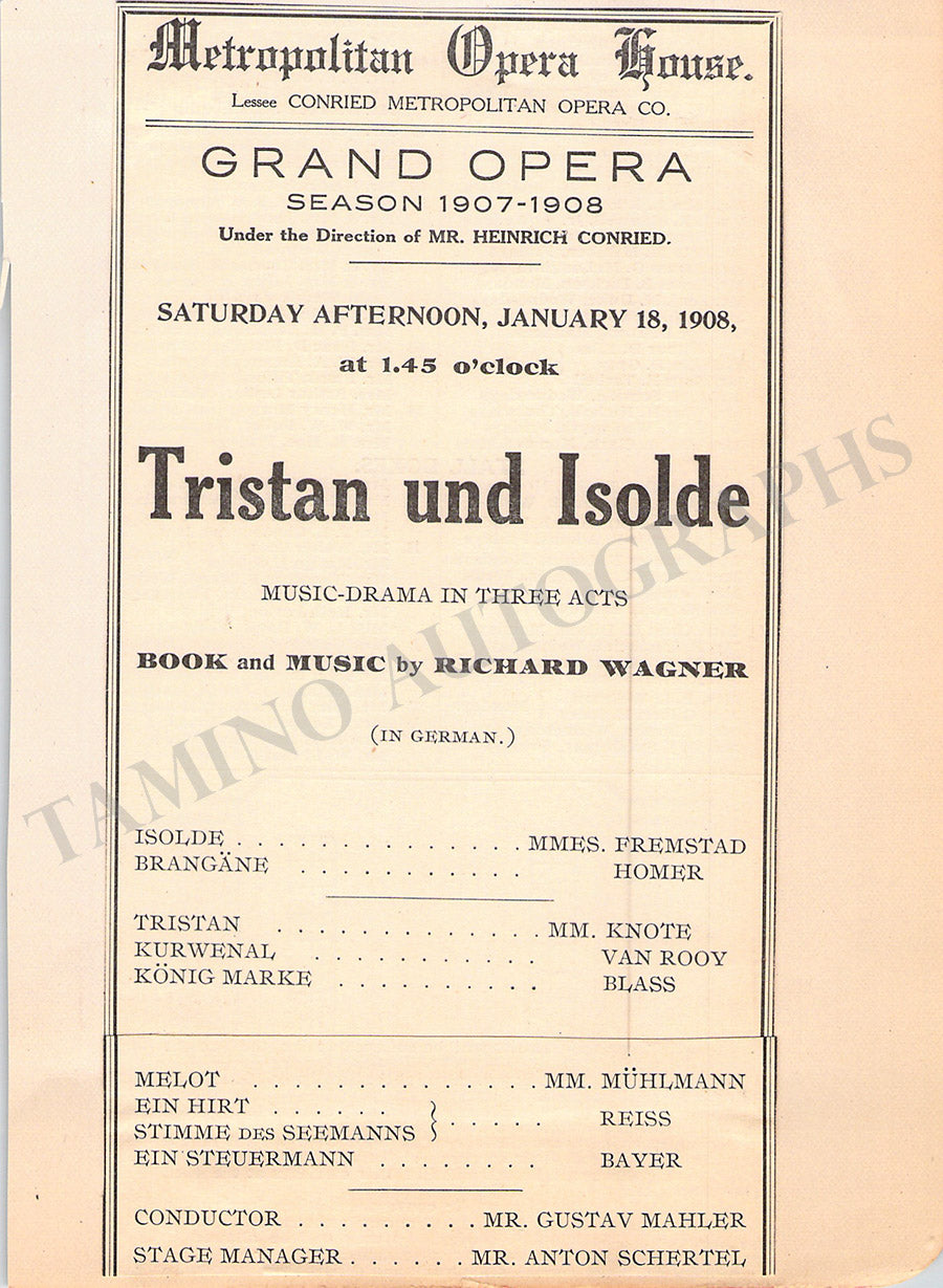 Mahler, Gustav - Unsigned Metropolitan Opera Program Clips
