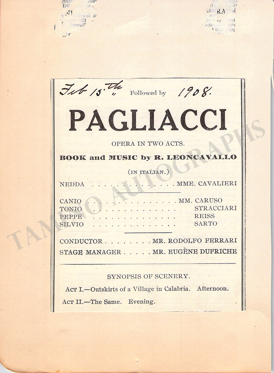 Original program clips from the Metropolitan Opera between 1908 and 1910, in different sizes and conditions where the famous composer performed as conductor (for more details please check individual descriptions).