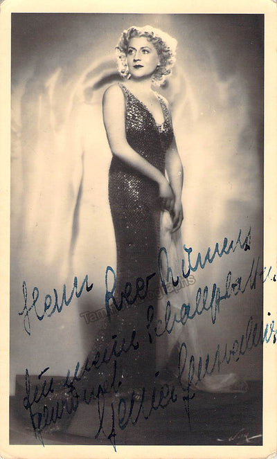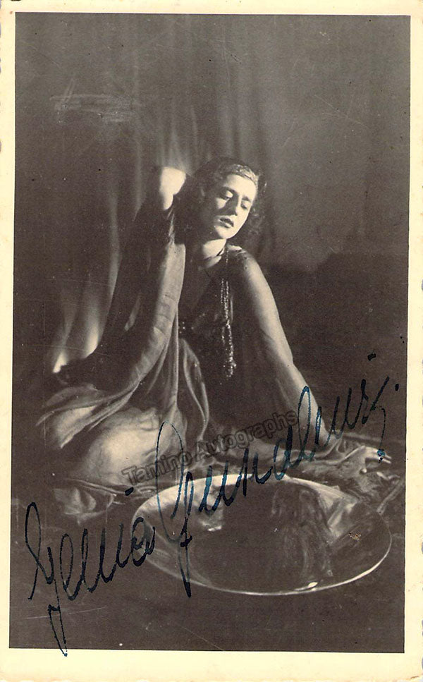 Signed postcard photograph, shown in the title role of Richard Strauss's Salome. Additional signature on verso. Stamped on verso by photographer Hans Richard Ziegert, Koln. Size is 3.25 x 5.25 inches, some bends, otherwise in very good condition.